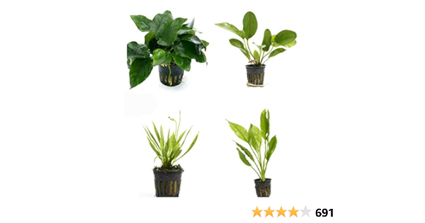 Amazon Com 4 Potted Live Aquarium Plants Bundle Anubia Amazon Sword Kleiner Bar Narrow Leaf Pet Supplies