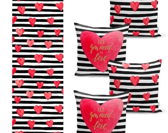 Set Of 4 Valentine S Day Pillow Covers And 1 Table Etsy